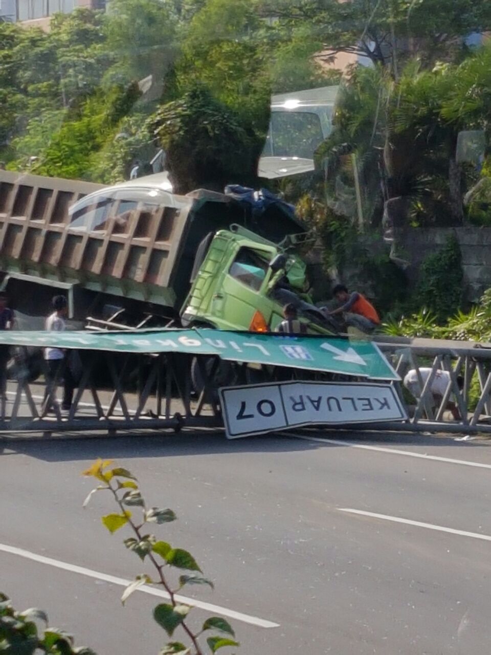 Akibat robohnya tiang penunjuk jalan, kepolisian mengalihkan arus lalu lintas Jakarta arah Merak dan ke Tol Semanggi Tangerang ke arah Tol Pluit, Kapuk, Jakarta Utara.