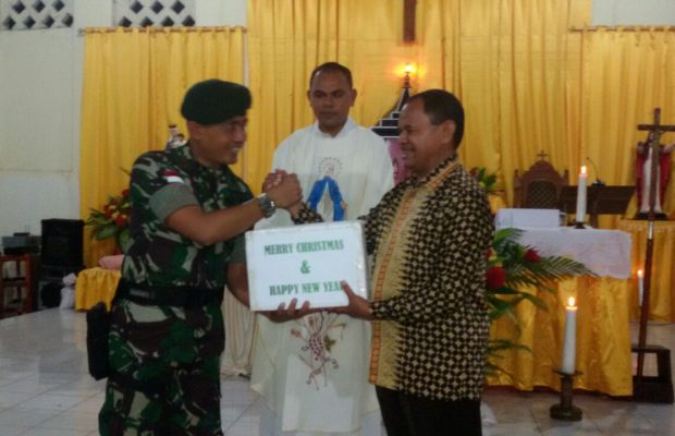 Diawali dengan Misa malam Natal, Sabtu (24/12) pukul 19.00 wita, dipimpin langsung oleh Romo Yansen Pastor Paroki Oeolo. Setelah acara Pokok Misa malam natal selesai Danpos Baen turut memberikan kata sambutan Ucapan Natal kepada seluruh umat yang hadir. Pada kesempatan ini pula satgas memberikan bantuan berupa Al-Kitab dan 200 anakan pohon Flamboyan serta 500 Sengon kepada Gereja ‘Maria Ratu’ Paroki Oeolo ds. Oeolo kec. Musi Kab. TTU.