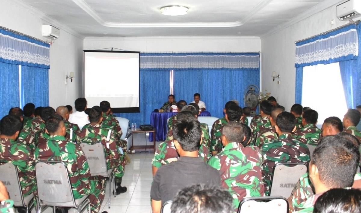 Jurnalline.com, KOARMABAR – Prajurit Pangkalan Angkatan Laut (Lanal) Ranai mengikuti ceramah kesehatan terkait Human Immunodeficiency Virus (HIV) Acquired Immune Deficiency Syndrome (AIDS) dan Bahaya Narkoba di Gedung Ciptadi, Markas Komando Lanal Ranai, Kepulauan Riau, Rabu (18/1). Kegiatan tersebut bekerja sama dengan Dinas Kesehatan Pemerintah Kabupaten Natuna, Kepulauan Riau sebagai nara sumber Imam Su’udi dan Wan Asrul Ardiansyah, S.K.M.