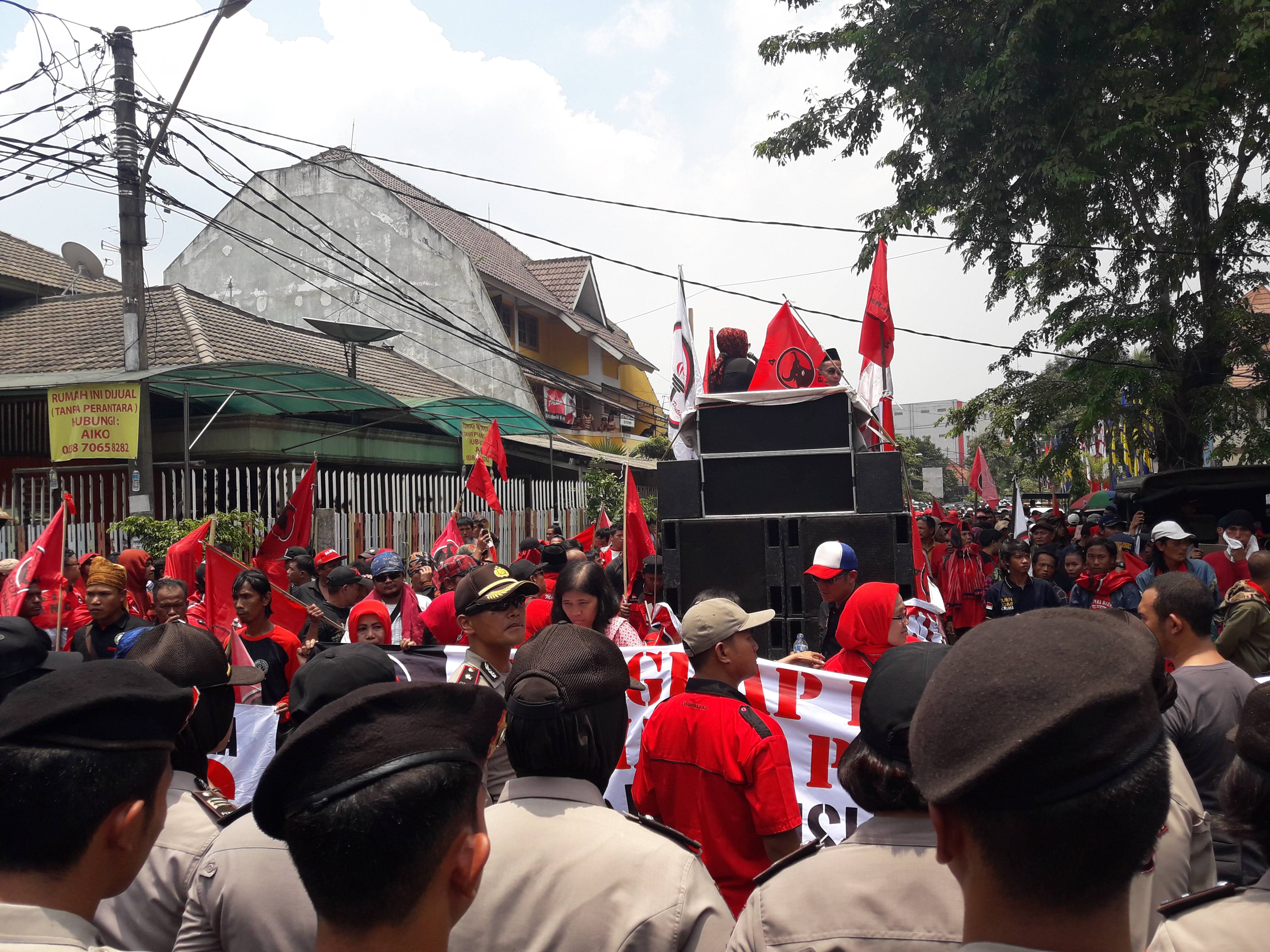 Guna mengantisipasi hal-hal yang tidak diinginkan, puluhan aparat TNI/POLRI disiagakan sejak pagi hari serta mengawal ketat jalanya aksi demo.
