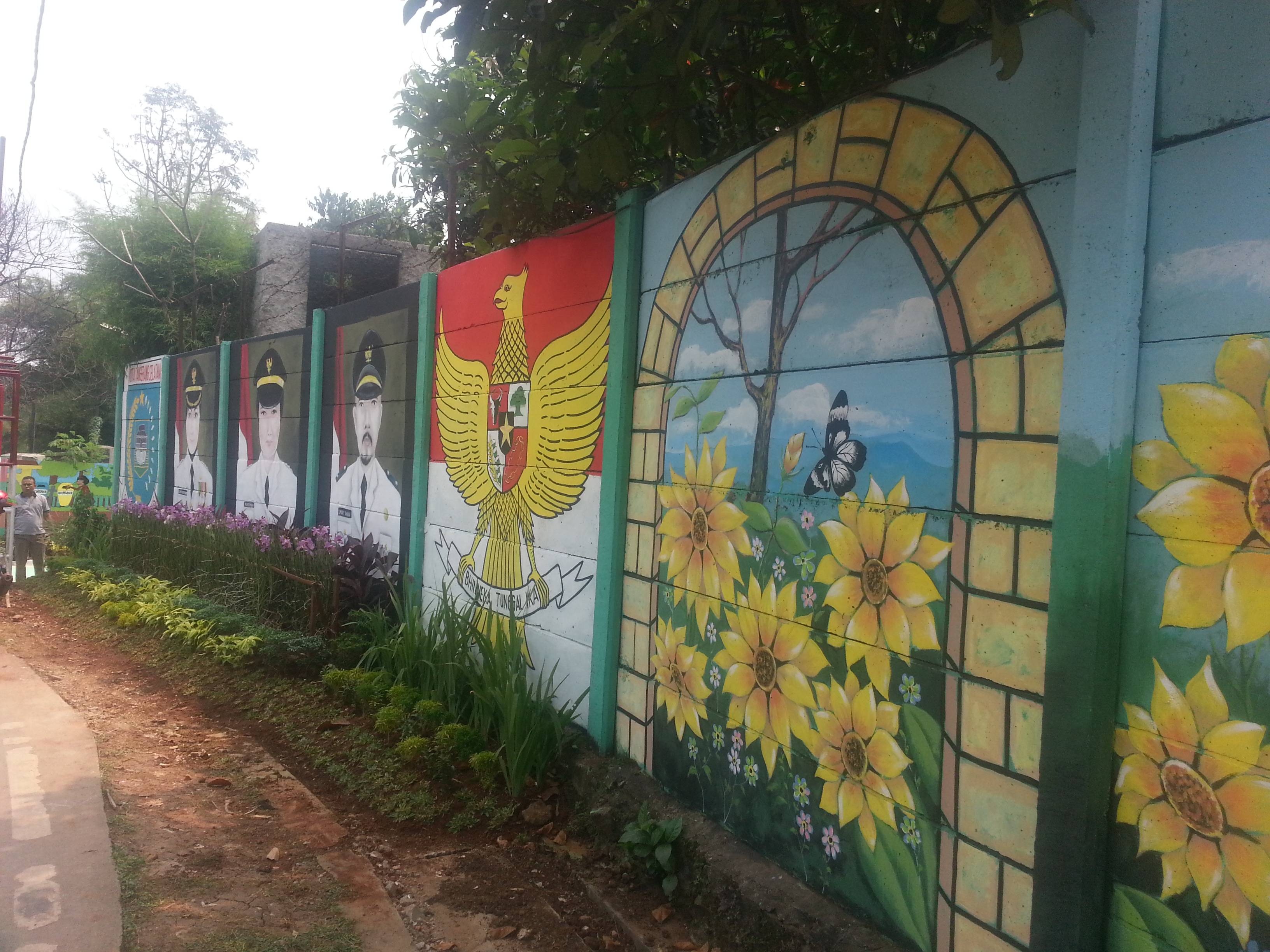 Keasyikan warga terlihat ketika menggambar pemandangan dan gambar pejabat yang di lengkapi dengan kata -kata motivasi di gang yang ada temboknya baik kanan maupun kiri.