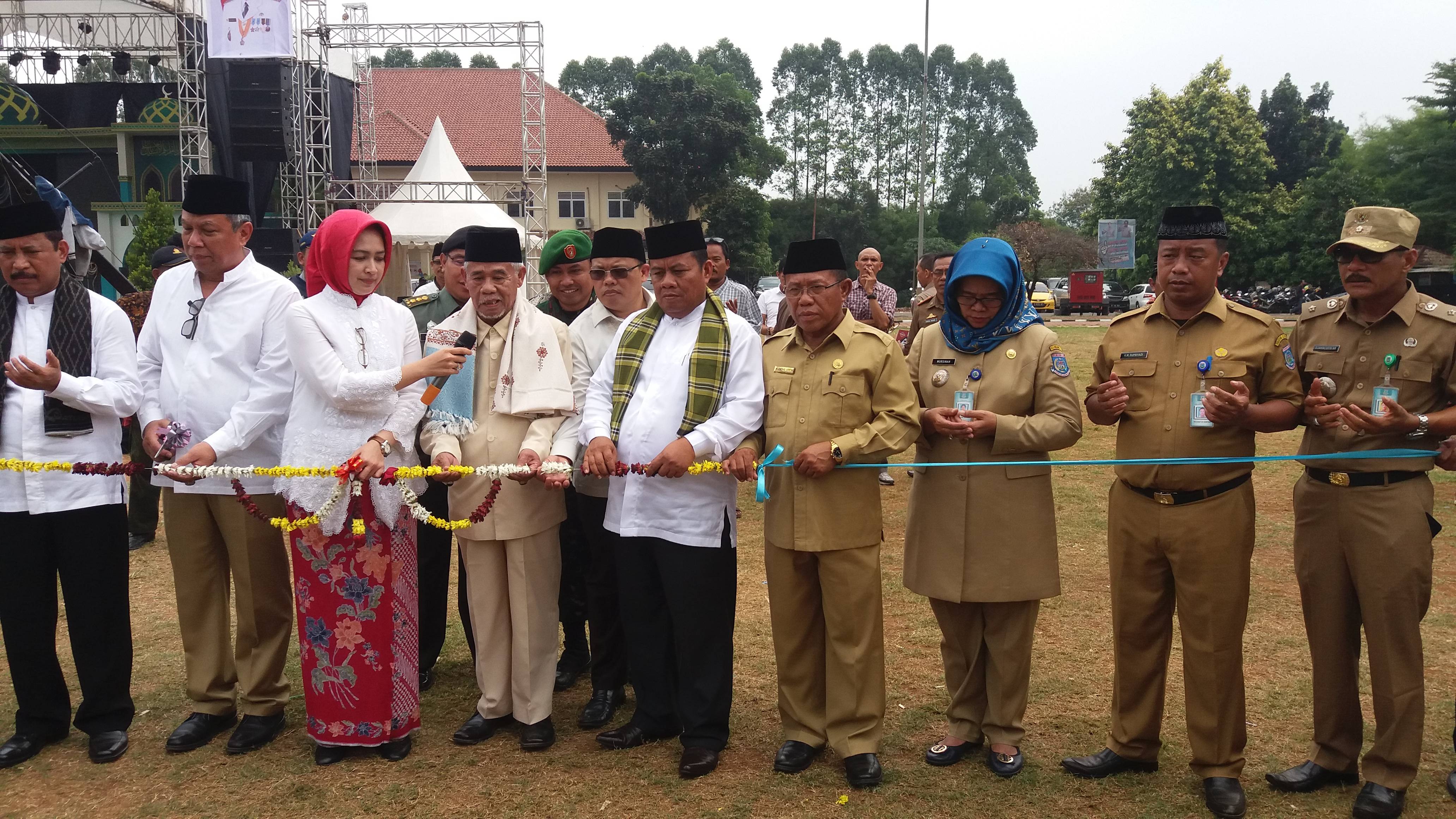 Jurnalline.com, TANGSEL – Walikota Tangerang Selatan (Tangsel) Airin Rachmi Diany memotong pita tanda dibukanya sepuluh Stan untuk Usaha Mikro, Kecil dan Menengah (UMKM) yang ada di Tangsel dalam rangka memeriahkan lomba MTQ Tingkat kota yang ke-8, usai melakukan pawai ta’aruf di Lapangan Cilenggang, Sepong, Tangsel, Senin (25/9/2017).