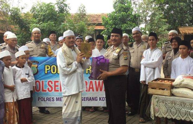 Selain itu, jajaran Polsek Karawaci memberikan sumbangan berupa sembako, sapu dan 10 buah Al Qur’an, yang diserahkan Kapolsek secara simbolis kepada pimpinan Pondok pesantren Ar Ruhama, KH. Baihaqi, dan diterima baik dengan mengajak seluruh anggota sholat dzuhur berjamaah bersama para santri.