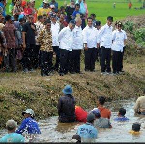 Jurnalline.com, Banyuasin (Sumsel) – Presiden Republik Indonesia (RI) Joko Widodo meninjau pelaksanaan Program Padat Karya Tunai di Desa Banyu Urip Kecamatan Tanjung Lago Kabupaten Banyuasin, Senin (22/01). Peninjauan dilakukan usai Presiden Jokowi melakukan penyerahan KPI dan KPH, penyerahan sertifikat tanah serta membuka acara kongres XXX Perhimpunan Mahasiswa Katolik Republik Indonesia.