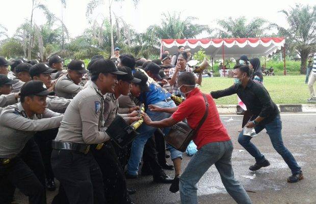 Jurnalline.com, Banyuasin (Sumsel) – Personil gabungan Polisi Resort (Polres) Banyuasin, bubarkan aksi anarkis masa yang akan menyerang kantor Komisi Pemilihan Umum Daerah (KPUD) Kabupaten Banyuasin. Anarkis ratusan massa ini menjadi salah satu skenario dalam simulasi yang di lakukan Kepolisian Resort Banyuasin dalam persiapan melakukan pengamanan Pilkada Banyuasin yang Serentak digelar pada juli 2018 mendatang.