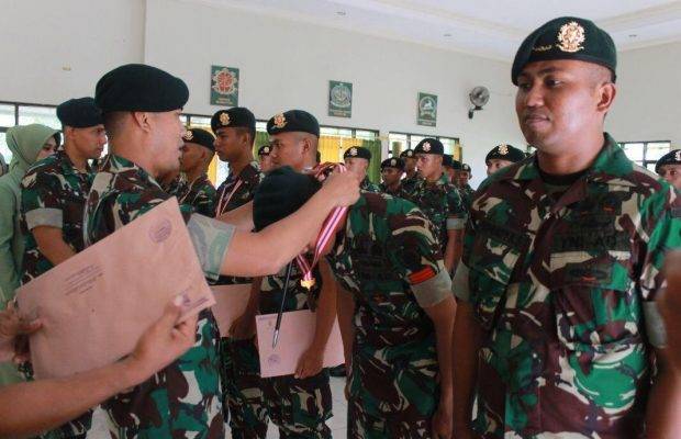 Pemberian penghargaan kepada atlet petembak yang telah berprestasi pada lomba tembak Piala Pangdivif 2 Kostrad berapa waktu lalu dilaksanakan dihadapan seluruh prajurit dan Persit Brigif Raider 9 Kostrad.