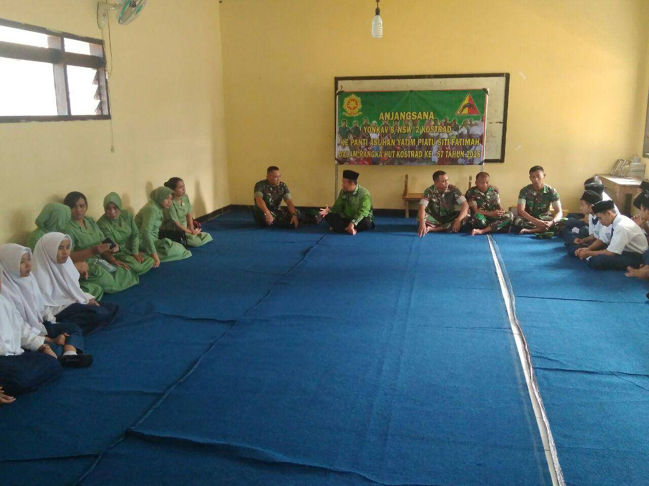 Dalam kesempatan itu Komandan Ki Tank Kapten Kav Nurhaedi menyampaikan bahwa maksud kedatangannya kali ini ke Panti Asuhan Siti Fatimah adalah untuk bertemu dengan anak-anak yatim dan memberikan bantuan berupa Sembako dan peralatan tulis, serta berharap agar anak-anak yatim/piatu di Panti Asuhan Siti Fatimah turut serta dalam mendoakan prajurit Yonkav 8 dalam melaksanakan tugas sehari-hari demi menjaga keutuhan NKRI.
