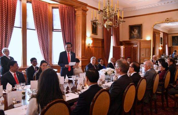 Jurnalline.com,Wellington – “Jangan lupa, jika minum kopi, minumlah kopi Indonesia,” kata Presiden Joko Widodo dalam sambutannya saat menghadiri jamuan santap siang kenegaraan bersama Gubernur Jenderal Selandia Baru Dame Patsy Reddy di Government House, Wellington, Selandia Baru pada Senin, 19 Maret 2018. Riuh tawa dan tepuk tangan dari semua yang hadir pun menyertai pernyataannya tersebut.