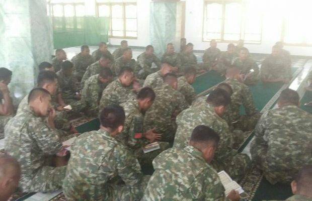 Dalam kegiatan doa bersama seluruh prajurit Korum Yonif R 323/BP membaca surat Yasin yang dipimpin oleh Praka Septian.