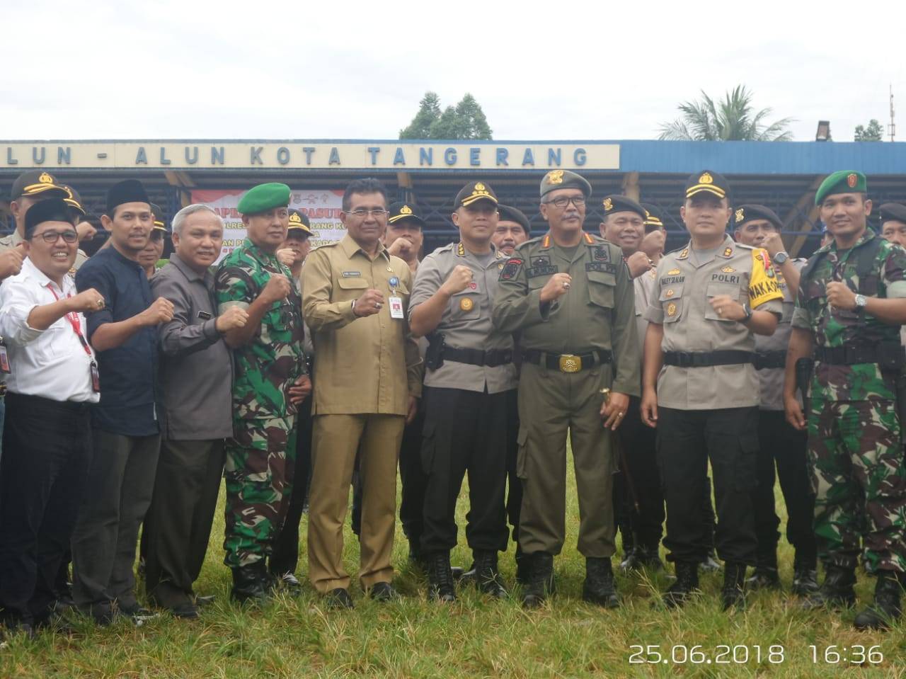 Acara yang digelar personil gabungan dari unsur TNI, Polri dan Sat Pol PP, bertujuan untuk menjaga keamanan pada pilkada serentak baik Kota maupun Kab. Tangerang, agar kiranya pada saat pencoblosan pada tanggal 27 juni 2018 berjalan dengan aman dan kondusif.