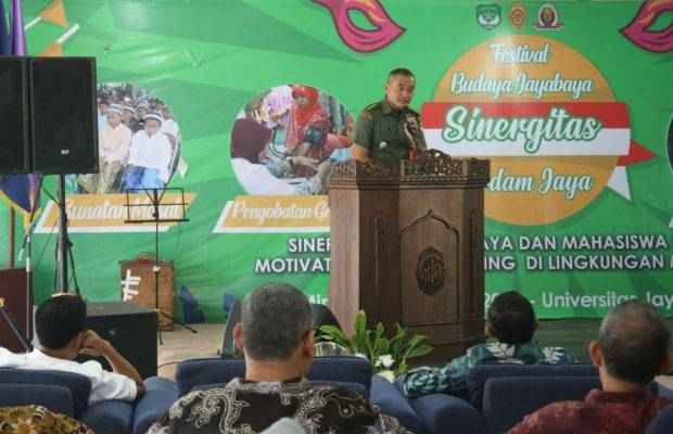 Pada kesempatan yang sama, Pangdam Jaya Mayjen TNI Joni Supriyanto dalam sambutan tertulis yang dibacakan Aster Kasdam Jaya Kolonel Inf Jacky Ariestanto mengatakan, Festival Budaya Jayabaya ini merupakan kegiatan yang diagendakan dalam rangka sinergitas TNI dan mahasiswa sebagai motivator serta pembimbing di lingkungan masyarakat yang merupakan perwujudan dari hubungan baik antara Kodam Jaya dengan Universitas Jayabaya. “Kegiatan ini sarat dengan nilai gotong royong dan kemanusiaan, ini dirasakan sangat tepat, karena TNI tidak bisa dipisahkan dari rakyat dan senantiasa berorientasi pada kepentingan dan kebutuhan masyarakat, bangsa dan negara sebagai perwujudan kemanunggalan TNI dengan rakyat,” tegasnya.