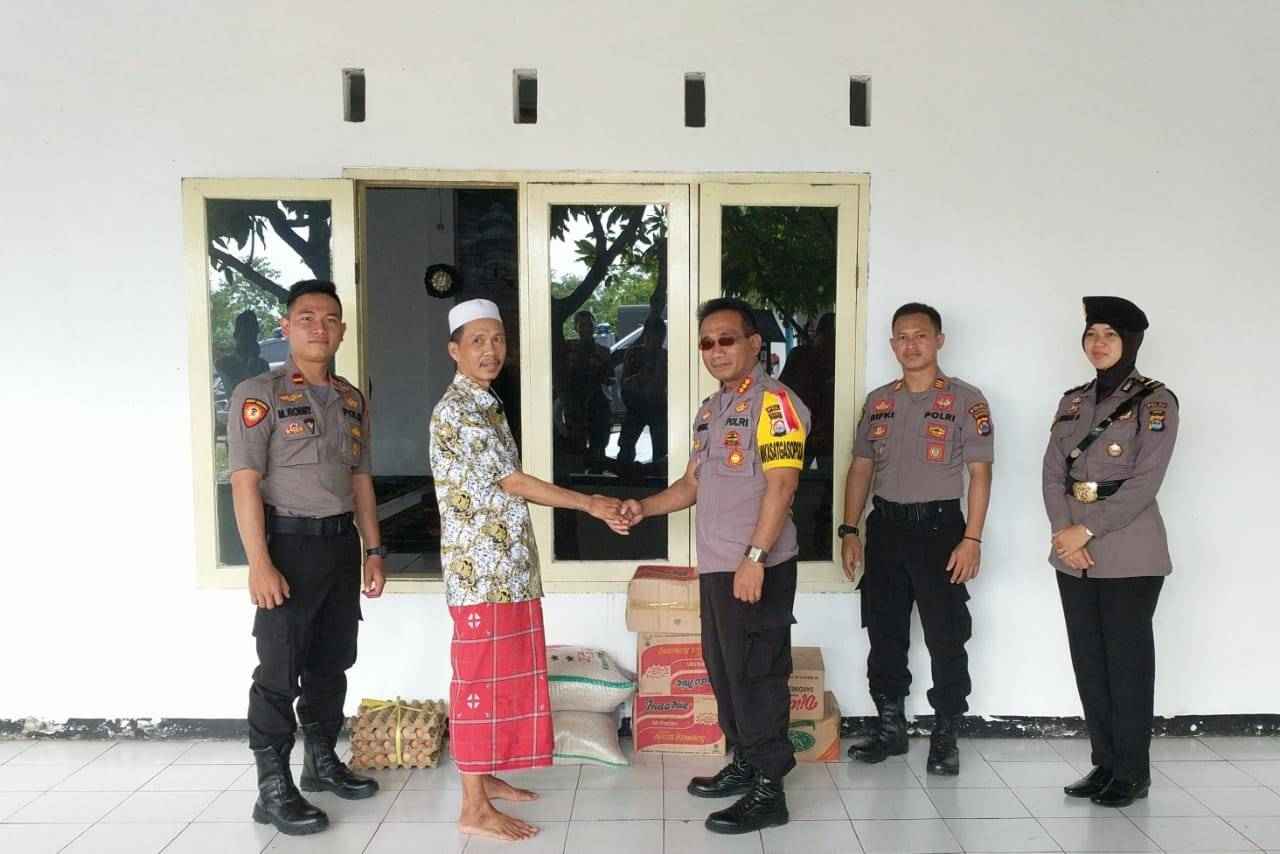 Pemberian bantuan sembako berupa beras, telur, makanan kaleng, minyak goreng dan lainnya diberikan secara simbolis oleh Kombes Pol Jondrial kepada K. H. Sugianto.