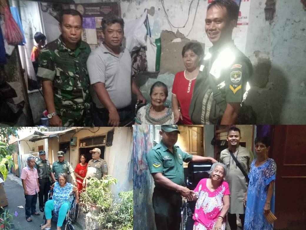 Kegiatan ini serentak dilaksanakan oleh 3 babinsa yaitu Serma Agus dan Serda Heru yang menyerahkan bantuan kepada Karsih di Kebon Kelapa. Kursi ke tiga diterimakan kepada Rosmita dan kursi roda ke empat diterima Arsinah di kelurahan Gunung Sahari Utara.
