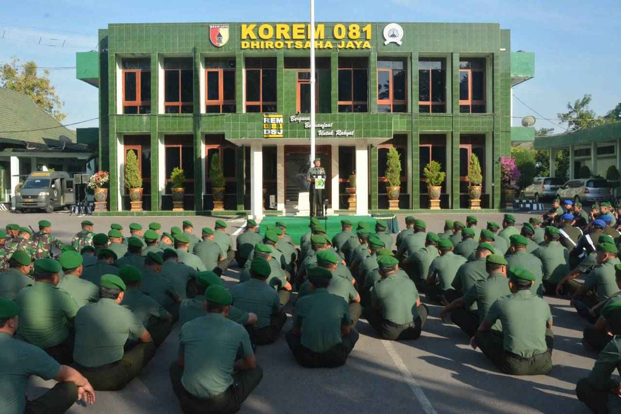 Jurnalline.com, Madiun – Selesai bertindak sebagai Irup pada upacara bendera 17an, Danrem 081/DSJ Kolonel Inf Masduki, S.E., M.Si. memberikan Jam Komandan kepada seluruh anggota Korem 081/DSJ beserta Satdisjan, bertempat di Lapangan Makorem 081/DSJ, Jl. Pahlawan No. 50 Kota Madiun, Jawa Timur, Rabu (17/7/19).