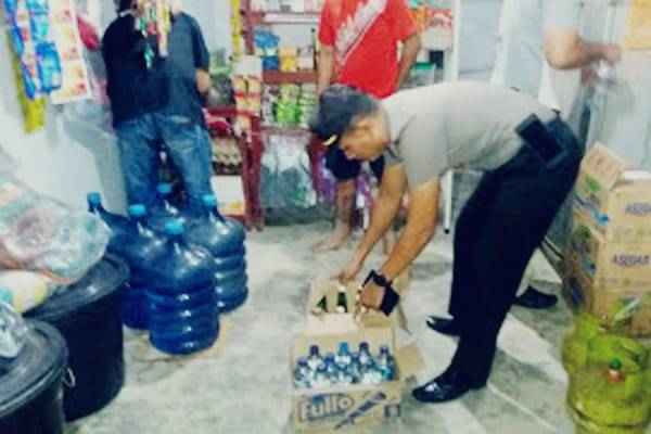 Hasil razia K2YD yang dilakukan Polres Minsel di sejumlah kios dan warung yang ada di seputaran Pusat Kota Amurang, petugas gabungan Kepolisian, mengamankan 10 botol miras jenis Cap Tikus dan 12 botol Casanova.