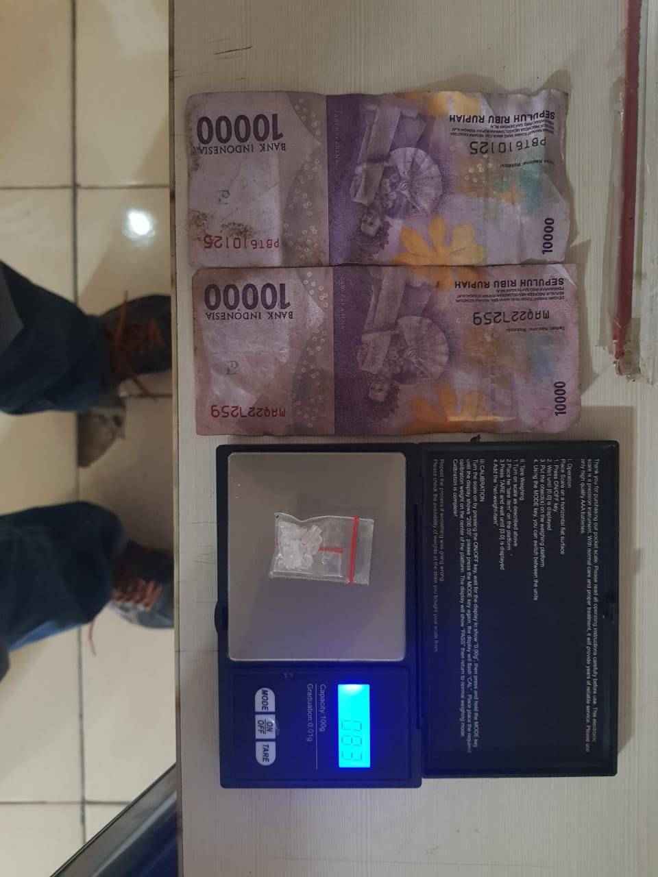 Kemudian dari hasil penangkapan pelaku ditemukan barang bukti Shabu 0,83 gram kristal terbungkus plastik putih klip, 1 buah Hp, uang Rp.20.000,-, 1 buah sepeda motor matic putih.