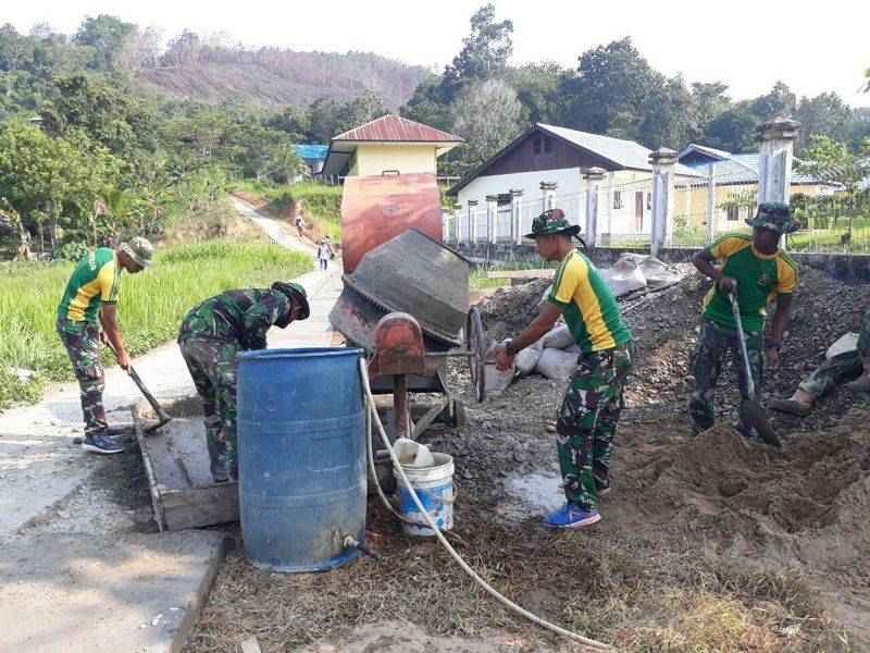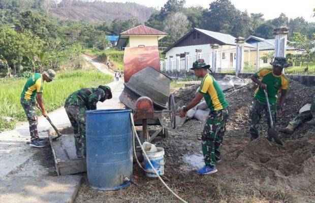 “Perbaikan jalan tersebut dilakukan karena kondisi jalan di desa tersebut rusak parah dan apabila kondisi hujan, jalan tersebut licin dan sulit dilalui oleh masyarakat, bahkan kendaraan roda dua pun sebelumnya tidak dapat melalui jalur tersebut,” ujar Kapten Inf Dofi Saputra.
