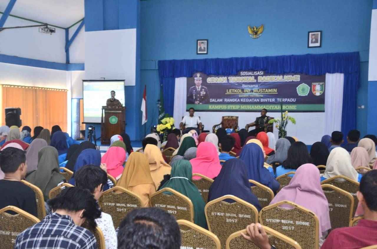 Di kesempatan yang sama Letkol Inf. Mustamin di hadapan sekitar kurang lebih 200 orang mahasiswa STKIP yang terdiri dari perwakilan berbagai jurusan, Dandim Letkol Inf Mustamin, menyampaikan ucapan terima kasih atas sambutan yang di berikan oleh STIKP Muhammadiyah Bone.