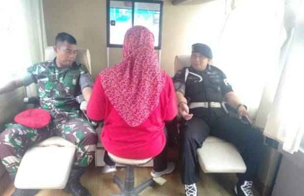 Kegiatan baksos donor darah Satbrimobda Banten dipimpin Ipda Ayi S , beserta kurang lebih 75 personel.