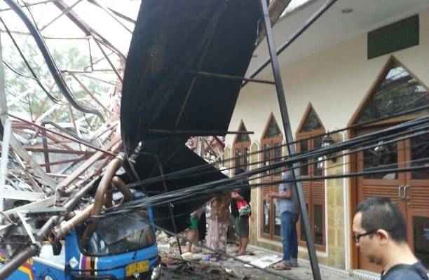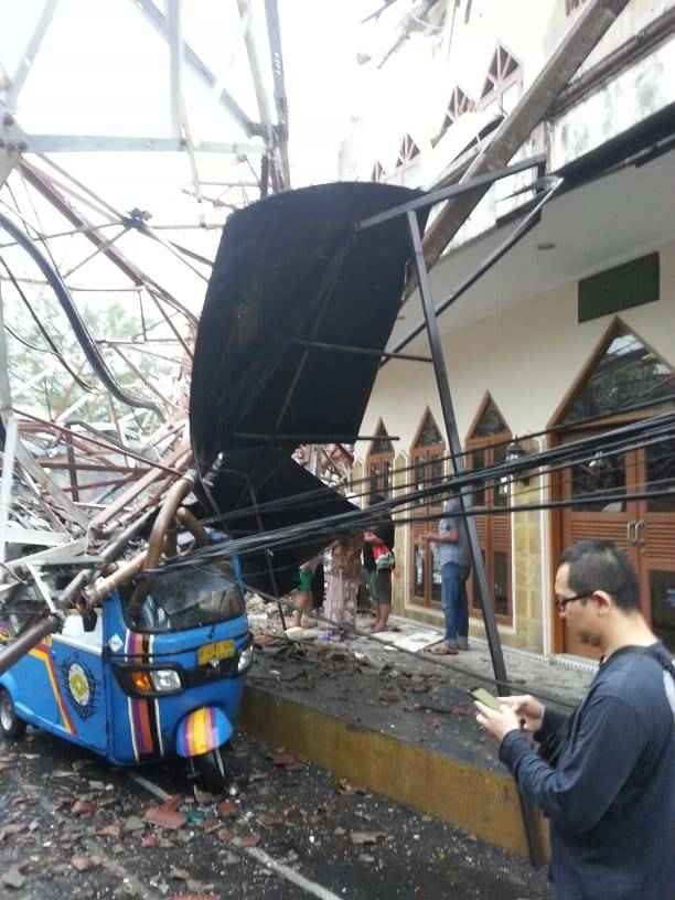 Informasi yang diperoleh akibat peristiwa ambruknya tower setinggi 120 meter ini, kerusakan yang dialami yakni, Masjid Al Amin, 5 rumah warga, 1 unit Bajaj.