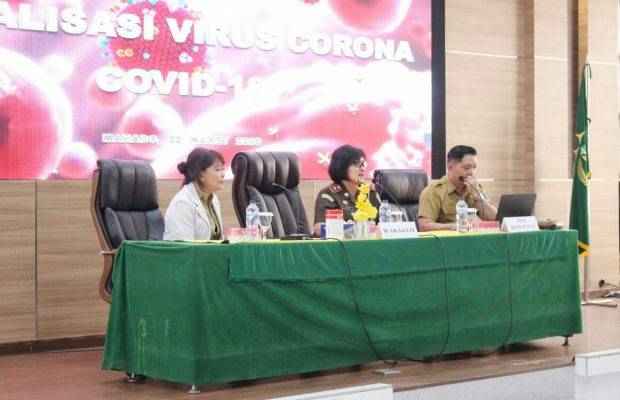 Dalam sambutannya Wakajati Sulut A. Dita Prawitaningsih, SH, MH mengatakan bahwa kegiatan sosialisasi ini merupakan upaya untuk melakukan berbagai langkah yang dipandang perlu guna mencegah dan menanggulangi perkembangan kasus penularan Novel Coronavirus 2019 (2019-nCov) atau Virus Corona.