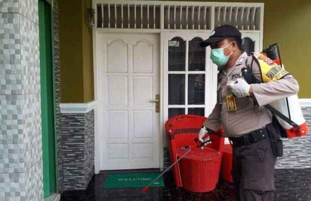 “Hari ini Polsek Bojonegara polres cilegon melakukan penyemprotan disinfektan di 4 (empat) lokasi desa diwilayah Bojonegara dipimpin langsung oleh Kapolsek Bojonegara AKP. Tri Sutrisno , SH dan personel polsek Bojonegara,” terangnya.