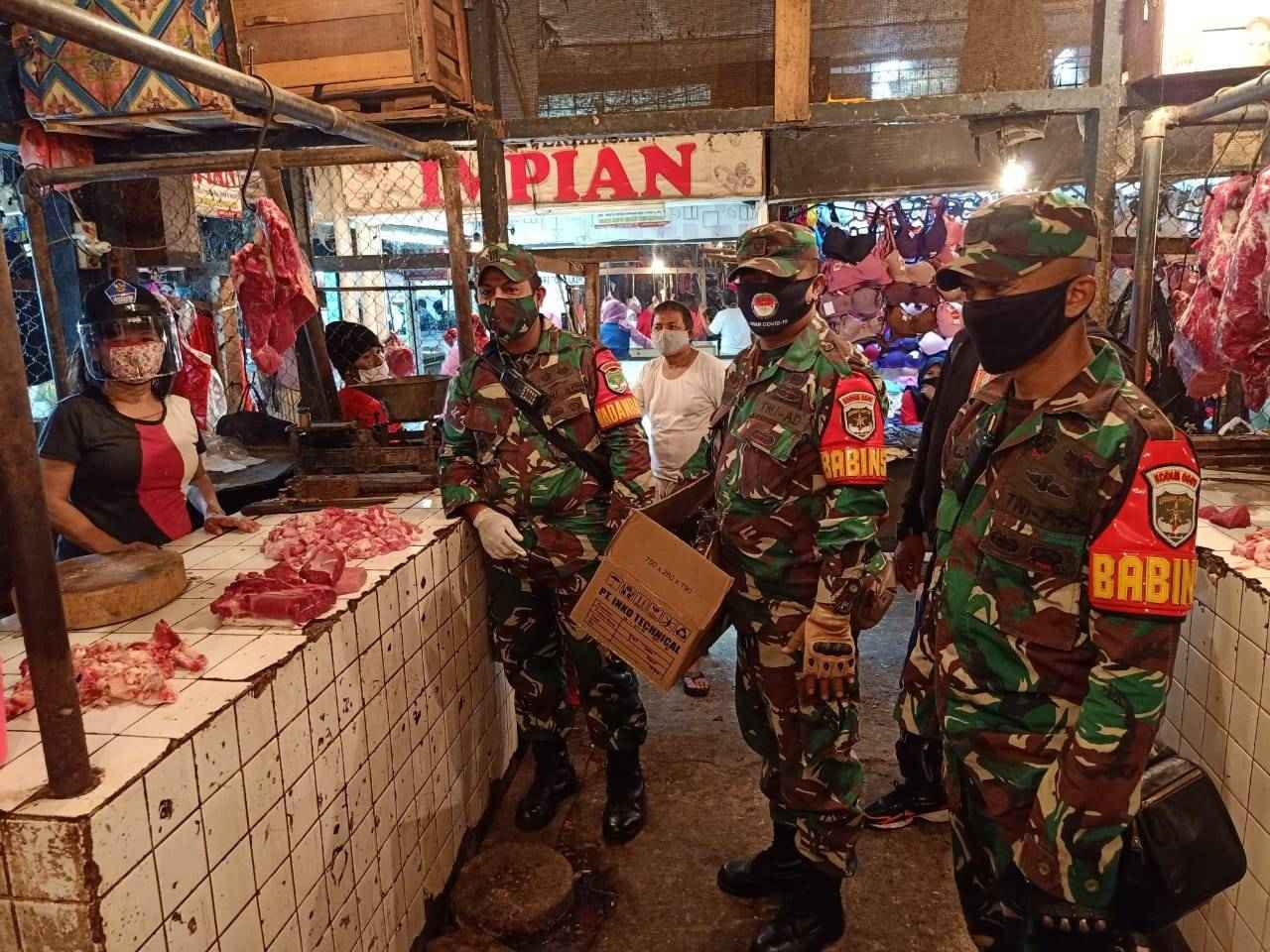 Koramil 07/Kemayoran Bagikan APD Kaca Tutup Muka pada Pedagang