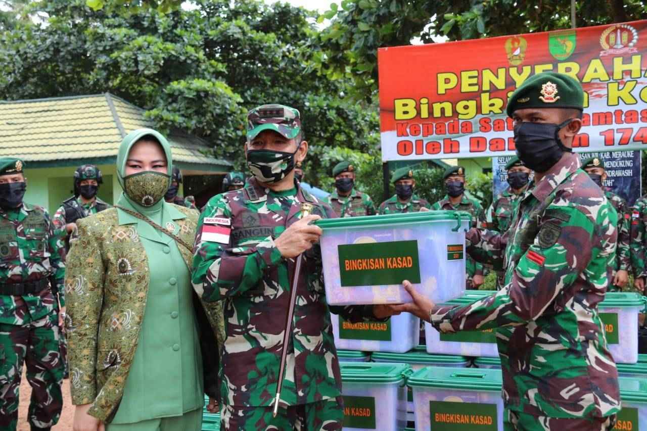 Jurnalline.com, Jakarta – Komandan Korem (Danrem) 174/ATW Kolonel Inf Bangun Nawoko selaku Dankolakops mengunjungi Pos Satgas Pamtas Yonif MR 411 Kostrad dan memberikan bingkisan lebaran dari Kasad Jendral TNI Andika Perkasa, kepada para prajurit Satgas Pamtas yang sedang melaksanakan tugas diperbatasan RI-PNG sektor selatan Kabupaten Merauke. Papua, Senin(18/5/2020).