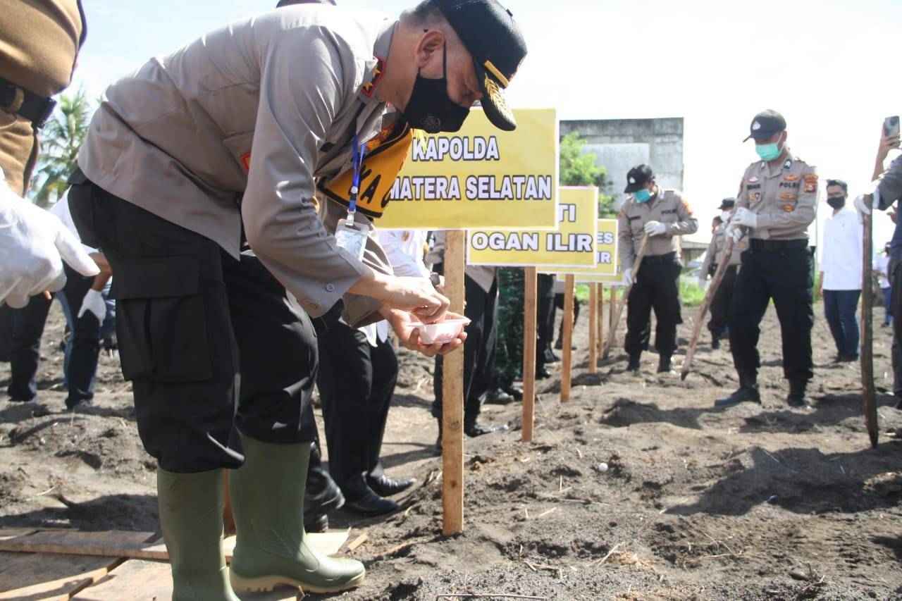 Kapolda Sumsel dalam kunjungan nya turut didampingi oleh Bupati Ogan Ilir H.M. Ilyas Panji Alam, S.E., S.H., M.M. Kapolres Ogan Ilir AKBP Imam Tarmudi, Ketua DPRD, Dandim, Kajari, Camat dan Tokoh Masyarakat Meninjau lokasi penanaman Benih Jagung di lahan binaan Polres Ogan Ilir di Kelurahan Timbangan kemudian melakukan kunjungan di Desa Tanjung Gelam Kampung Tangkal Covid-19.
