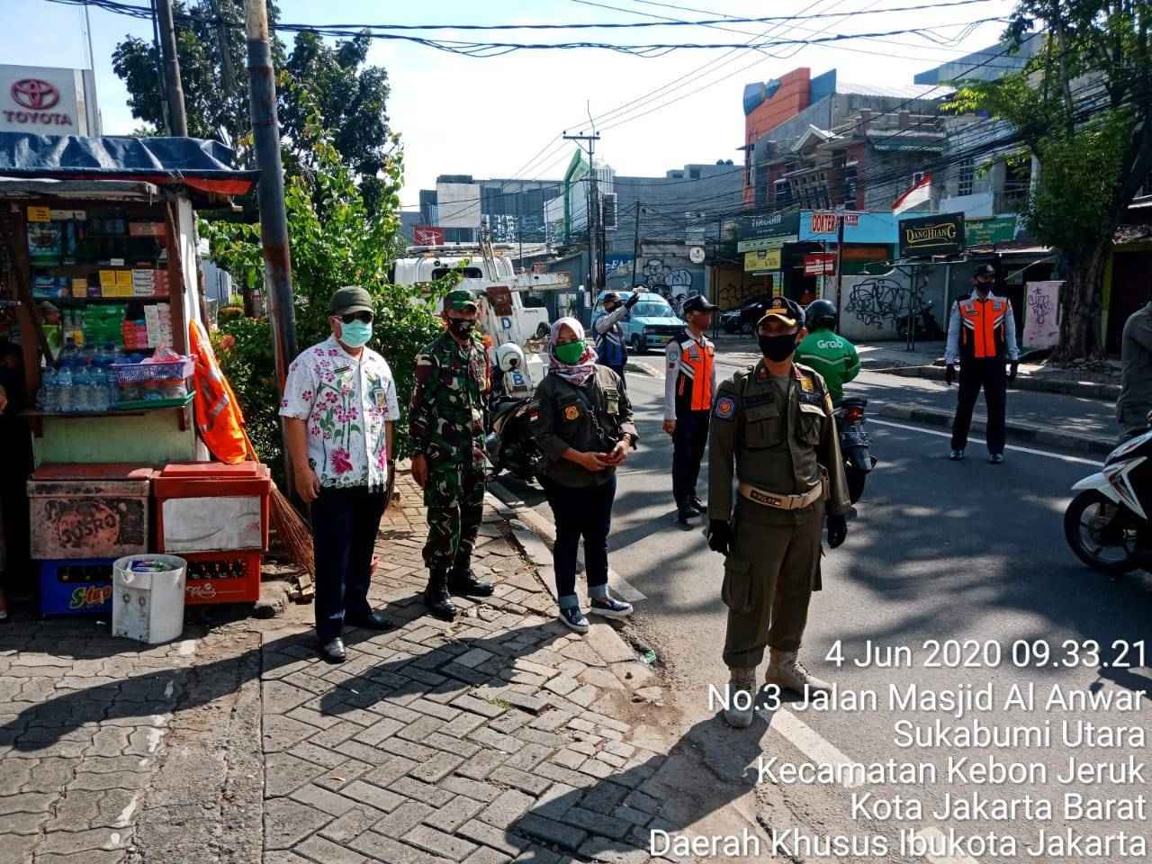 Pelda Sri Darmono dalam keterangannya menerangkan, para pelanggar di beri tindakan sanksi administrasi dengan penahanan KTP untuk di serahkan ke kantor Kecamatan Kebon Kebon Jeruk dan juga mendapatkan sanksi sosial dengan membersihkan lingkungan atau sapu jalanan serta membayar denda sesuai aturan undang-undang yang berlaku. Kata Babinsa Pelda Sri Darmono.
