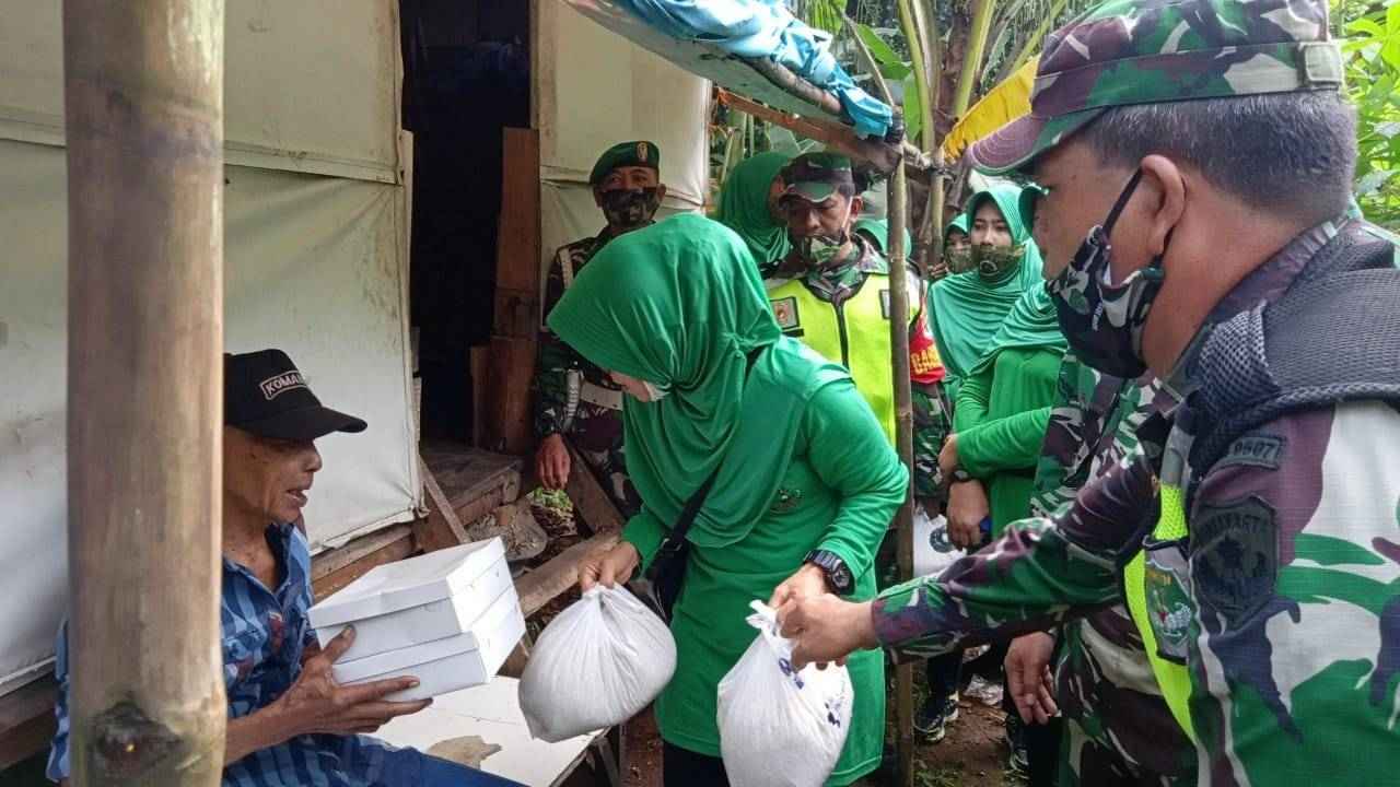Dandim 0507/Bks beserta Ibu dan Para Pengurus Persit mengunjungi rumah Serma (Pur) Bambang dimana yang bersangkutan adalah seorang Pensiunan RPKAD yang hidup sebatang kara bertempat tinggal numpang ditanah warga dengan membuat gubug karena di terlantarkan anak nya.