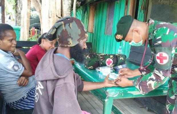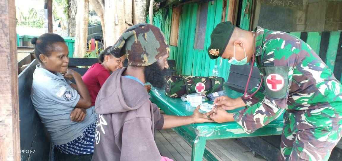 Kopda Dodik beserta satu orang anggota tim kesehatan langsung bergerak cepat menyiapkan peralatan medisnya untuk melakukan pertolongan dan Pengobatan kepada bapak Variera (50) yang mengalami sakit malaria. “Tim Kesehatan melakukan pengecekan dan pemeriksaan kepada pasien untuk diobati agar lekas sembuh,” tutur Rhetorica.