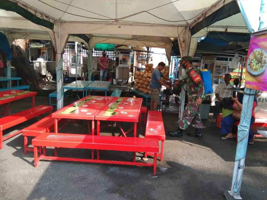 Selama penyemprotan berlangsung dari Babinsa tetap melakukan himbauan kepada para pedagang kuliner dan pengunjung untuk selalu mematuhi protokol kesehatan jaga jarak aman, memakai masker dan selalu cuci tangan setiap saat untuk memutus penyebaran virus corona (Covid-19).