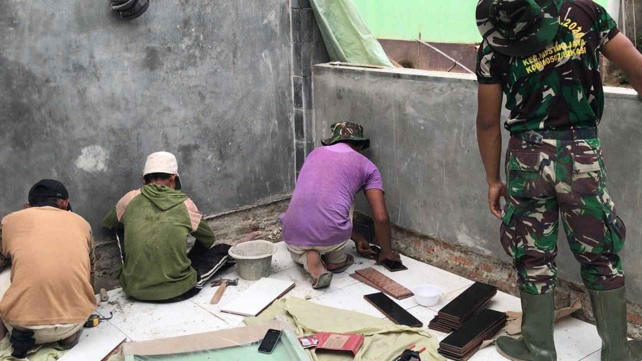 Jurnalline.com, Kodam Jaya (Kota Bekasi) – Anggota satgas TMMD yang tergabung dalam Satgas TMMD ke 109 Kodim 0507/Bekasi tidak hanya hebat dalam memegang senjata dan bertempur, namun, mereka juga mahir memegang peralatan pertukangan seperti memasang keramik lantai di Posyandu RT.03, RW.01, Kel.Mustikaya, Kec.Mustikajaya, Kota Bekasi, Jawa Barat. Senin (12/10/2020).