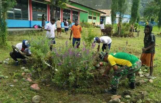 Jurnalline.com, Jakarta – Prajurit Satgas6 pamrahwan Yonif Para Raider 432 Kostrad memperbaiki taman di SMP N 1 Kurulu dengan tujuan agar para siswa lebih semangat lagi belajar di sekolah. Kampung Yiwika, Distrik Kurulu, Wamena, Provinsi Papua. Sabtu (19/10/2020).