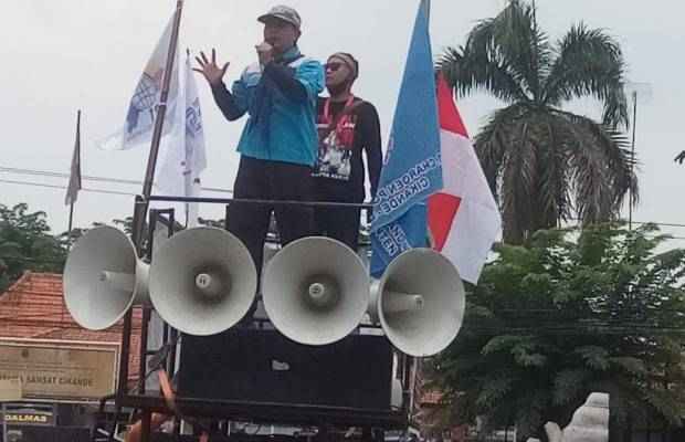 “Kita para buruh menolak keras UU Omnibus Law yang di putuskan oleh DPR RI, Kita menilai para Dewan kita berpihak kepada rakyat, akan banyak merugikan nasib kita para buruh, Kita akan berjuang sampai titik darah penghabisan Sebelum pemerintah pusat membatalkan UU Omnibus Law.” Teriak Asep Saipullah.