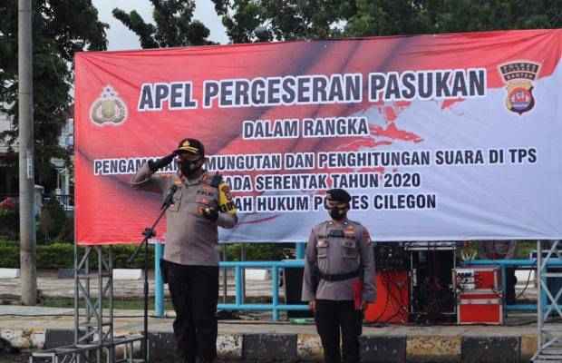 Jurnalline.com, Cilegon (Banten) – Kepolisian Resor (Polres) Cilegon gelar Apel Pergeseran Pasukan Pengamanan TPS Pilkada Walikota Cilegon/Bupati Serang dan Hitung Suara Pilkada Serentak tahun 2020 di Depan Mako Polres Cilegon, Selasa (08/12/2020).