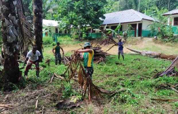 Jurnalline.com, Jakarta – Satgas Pamtas RI-PNG Yonif Mekanis Raider 413 Kostrad Pos Skamto bersama perangkat Sekolah membersihkan Lingkungan SD Inpres Yowong yang terletak di Kampung Yowong, Distrik Arso Barat, Kabupaten Keerom.