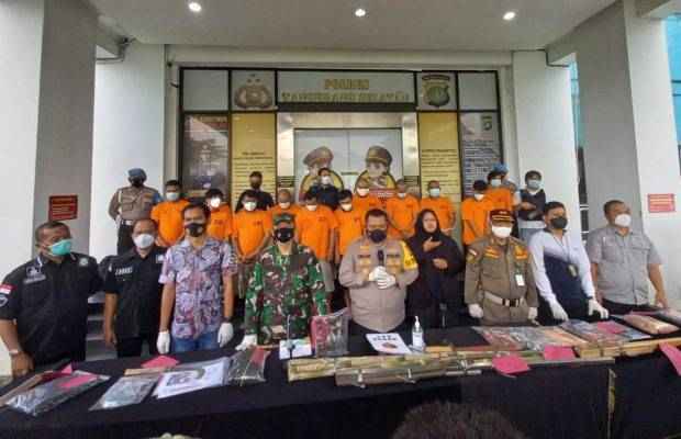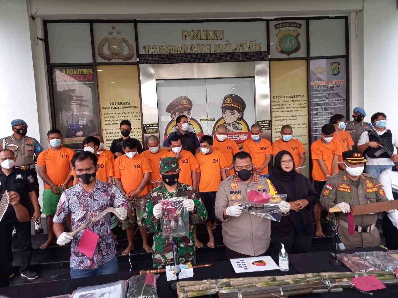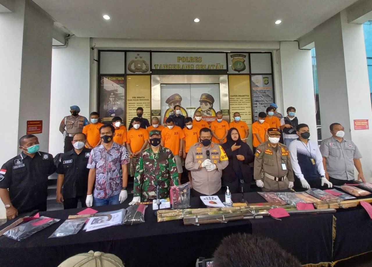 “Dalam kejadian tersebut Polresta Tangerang berhasil mengamankan 12 tersangka,” Dandim 0506/Tgr Kolonel Inf Bambang Hery Tugiyono saat menghadiri press release.