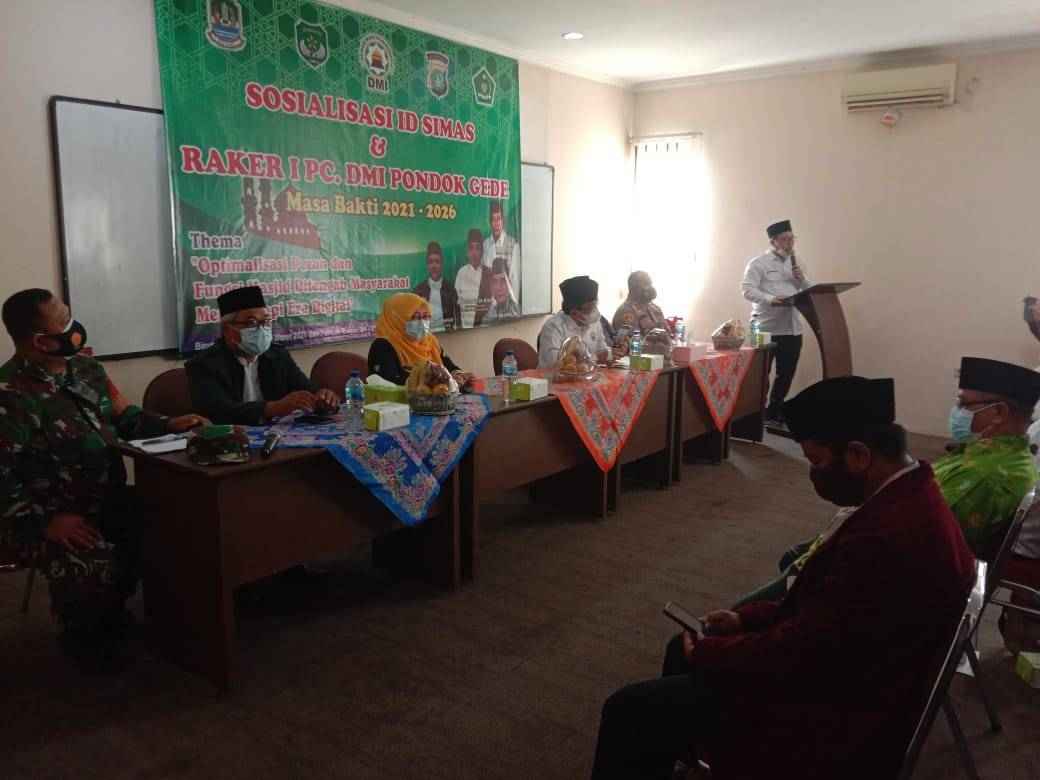 Dalam membuka acara tersebut Bapak H. Ahmad Mirja, S.Sg.,M.M. menyampaikan Bahwa ID SIMAS ini adalah sistem informasi Masjid yang merupakan program dari Kemenag mulai dari Tahun 2013, selain itu Fungsi ID Simas adalah untuk mengarahkan Masjid untuk mengenal Digital dan untuk Komunikasi dengan jamaah yang diharapkan semua Masjid di wilayah Pondok Gede sudah terdaftar di Aplikasi Simas dan memiliki nomor ID daftar E-Simas dan Saat ini sebagai contoh banyak administrasi yang belum dimiliki Masjid seperti IMB, Sertifikat dan surat-surat lainya, diharapkan Masjid-masjid mempunyai legalitas Hukum dan tujuannya akhir diharapkan DMI adalah rekan kerja Pemerintah dalam rangka membantu kerja Pemerintah untuk memajukan peran Masjid dan para jamaah atau masyarakatnya.