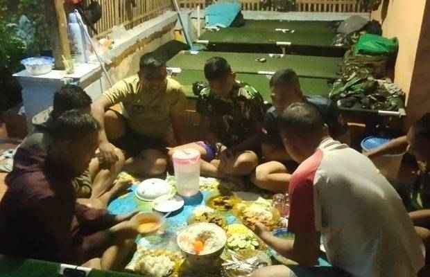 40 personil Satgas TMMD 110 Kodim 0509/Kab. Bekasi melaksanakan istirahat menikmati makan malam di rumah Wadi (45), salah satu warga Desa Kertarahayu, Kecamatan Setu Kabupaten Bekasi yang rumahnya di jadikan tempat bermalam Satgas TMMD.