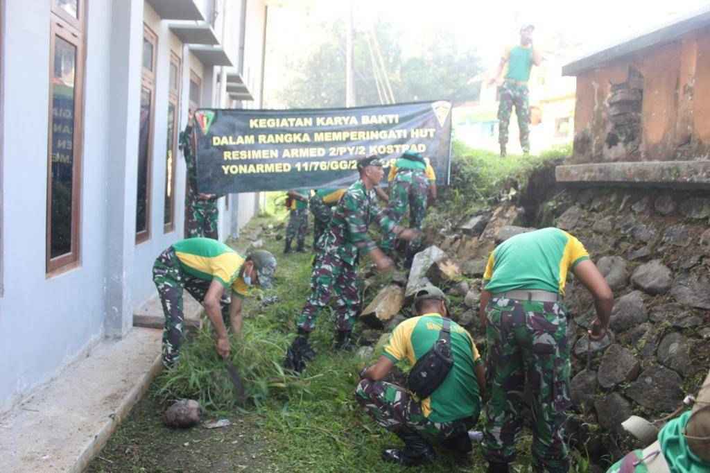 Jurnalline.com, Jakarta – Dalam rangka memperingati HUT Resimen Armed 2 Kostrad dan mewujudkan kedekatan dengan masyarakat desa binaan, prajurit Yonarmed 11 Kostrad melaksanakan karya bakti di Kampung Kauman, Desa Pirikan, Kecamatan Secang, Kabupaten Magelang, Sabtu (05/06/2021).