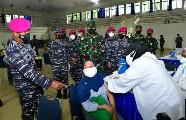 Jurnalline.com, Jakarta – Kepala Staf Angkatan Laut (Kasal) Laksamana TNI Yudo Margono, S.E., M.M., didampingi Komandan Korps Marinir (Dankormar) Mayjen TNI (Mar) Suhartono, M.Tr.(Han)., meninjau secara langsung pelaksanaan serbuan Vaksin Covid-19 yang diikuti keluarga besar Korps Marinir TNI AL dan masyarakat di Gedung Bapra Selatan Jl. Cilandak KKO, Jakarta Selatan, Selasa (29/6).