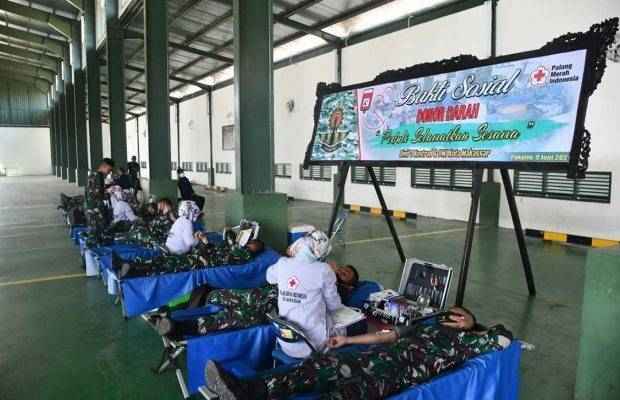 Prajurit Satjar Divif 3 Kostrad dengan penuh antusias mengikuti kegiatan Bhakti Sosial Donor Darah sebagai wujud nyata dalam mewujudkan kepedulian terhadap pemenuhan ketersediaan dan kebutuhan akan darah yang mengalami defisit pasokan darah ditengah pandemi Virus Corona (Covid 19 ).
