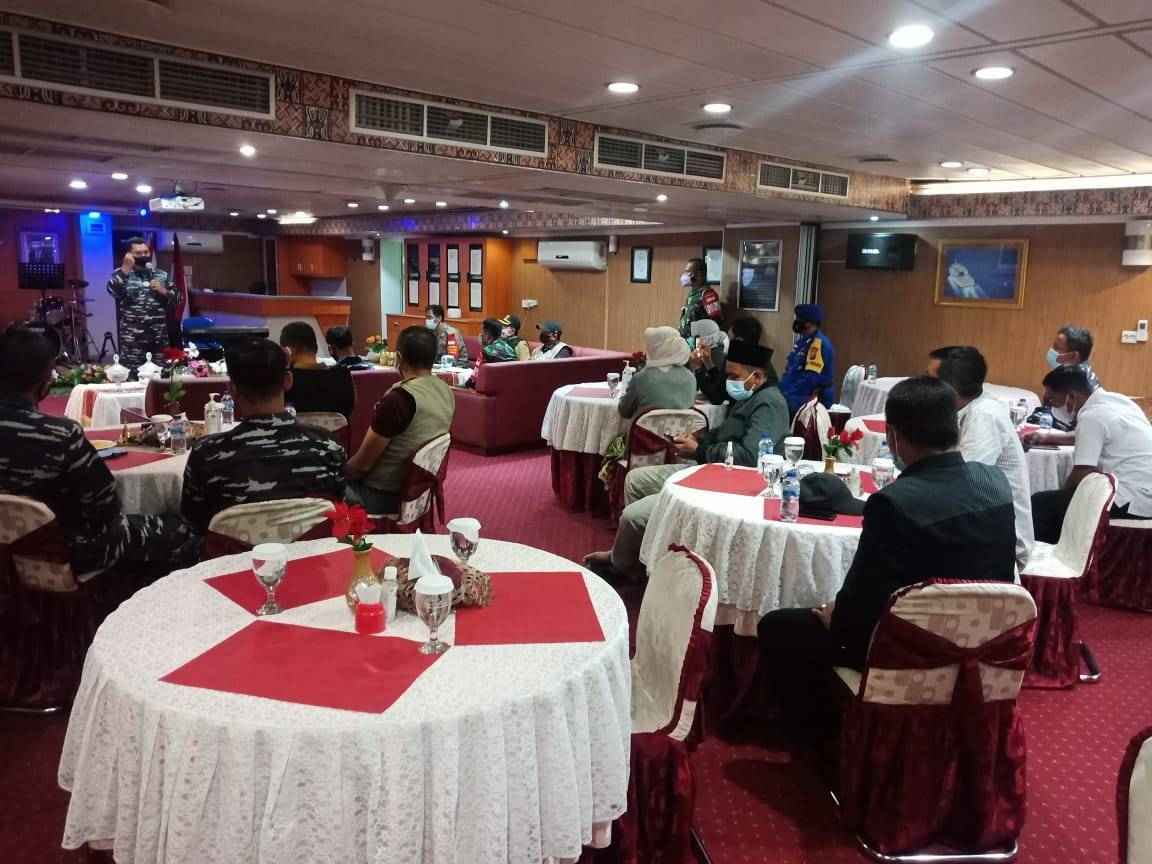 Jurnalline.com, TNI AL Koarmada II, Surabaya – Dalam perjalanan dari Surabaya menuju Pulau Bawean dengan menggunakan KRI Makassar-590 Asops Pangkoarmada II Kolonel Laut (P) Edi Haryanto bersama Komandan Satgas Serbuan Vaksinasi Covid-19 Koarmada II Kolonel Laut (P) Imam Purwanto menggelar rapat bagi seluruh panitia pelaksana agar seluruh kegiatan bakti sosial kepada mayarakat di Pulau Bawean dapat berjalan lancar, Rabu (28/7).