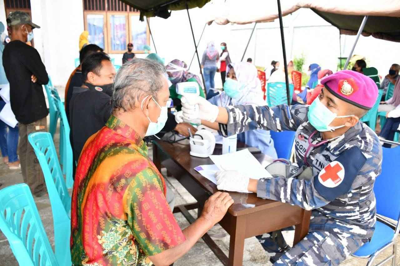 Jurnalline.com, Sorong – Program vaksinasi Covid-19 terus digencarkan pemerintah untuk menyasar ke seluruh lapisan masyarakat hingga terwujud kekebalan kelompok (Herd Immunity). Korps Marinir TNI AL khususnya Pasmar 3 menjalin kerja sama dengan Dinas Kesehatan Kabupaten Sorong guna membantu percepatan vaksinasi dan menekan angka penyebaran virus Covid-19 menggelar serbuan vaksinasi kepada masyarakat maritim di Kantor Puskesmas Malawili, Jl. Nangka, Distrik Aimas, Kabupaten Sorong, Papua Barat. Jumat (13/08/2021).