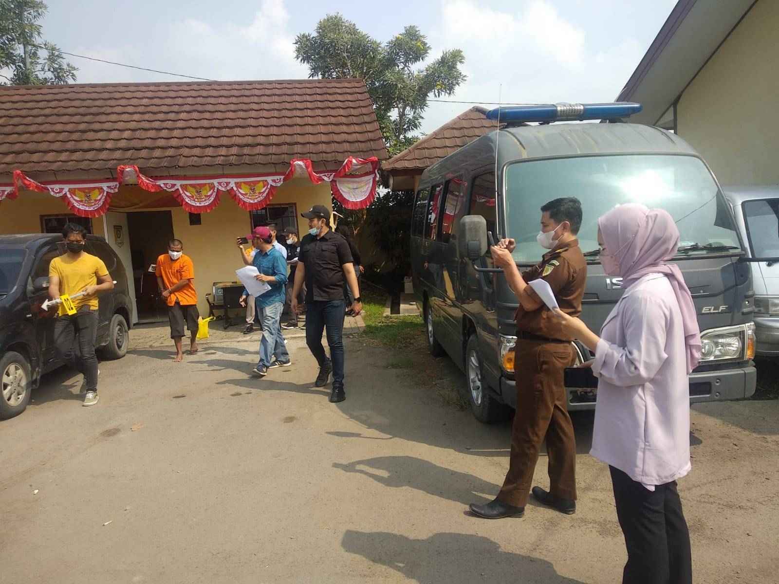 Jurnalline.com, Serang (Banten) – Satreskrim Polres Serang Polda Banten bersama pihak Kejaksaan Negeri Serang dan kuasa Hukum kedua pelaku menggelar rekontruksi kasus pembunuhan di halaman parkiran Polres Serang, Rabu (25/8/2021).