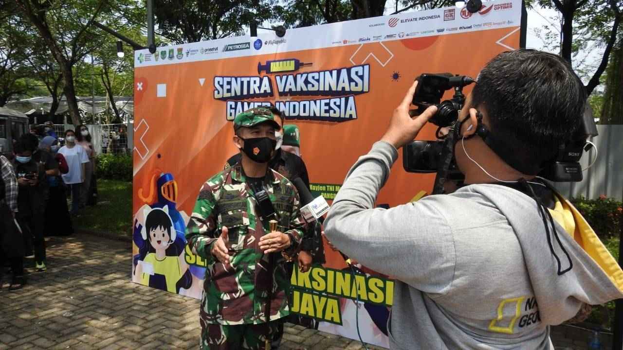 ” Kunjungan Pangdam Jaya untuk meninjau langsung pelaksanaan serbuan vaksinasi di pos-pos vaksin.” kata Dandim kepada media.