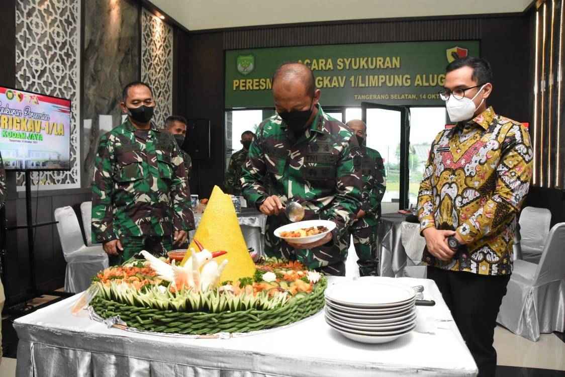 Jurnalline.com, Kodam Jaya (Tangerang) – Danrem 052/Wijayakrama Brigjen TNI Rano Maxim Adolf Tilaar, S. E., mendampingi Pangdam Jaya Mayjen TNI Mulyo Aji, MA., menghadiri giat peresmian dan syukuran Brigkav 1/Limpung Alugoro, di Jl. Rawa Kutuk Kelurahan Pondok Jagung Timur, Kecamatan Serpong Utara, Kota Tangerang Selatan, Kamis (14/10/2021).