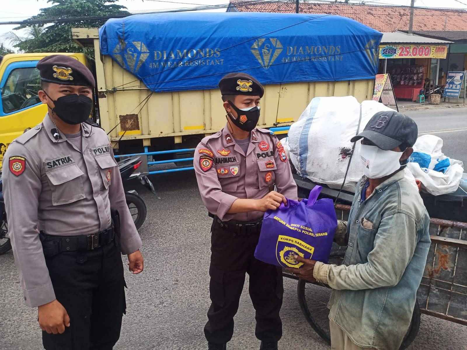 Kasat Samapta Polres Serang AKP Dadang SW mengatakan, kegiatan pembagian bantuan sosial (bansos) sebanyak 50 paket sembako yang dilaksanakan oleh jajaranya, dalam rangka untuk menanggulangi dampak pandemi covid-19 yang saat ini masih terjadi.